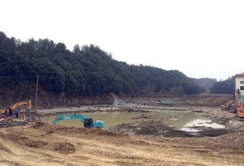 自2014年12月22日进驻施工现场以来,公司立即组建施工项目部,选派强有力的技术人员及施工队伍,积极展开施工。为保证防汛度汛工作的顺利进行及电站早日发电受益,业主要求在2015年4月底汛期来临之前必须完成全部水下工程。为了尽早完成施工任务,不延误工期,公司董事、副总经理华继阳和一公司经理层讨论决定,将隧洞导流改为明渠导流,全段围堰法施工,倒排工期加大投入;项目部先后投入6台挖机、1台装载机、1台推土机、24台汽车日夜交叉施工,终于在2015年1月17日成功实现围堰合拢。