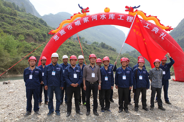 4月28日上午,在一阵响彻山谷的鞭炮声中,由公司承建的恩施市喻家河水库工程正式开工建设。恩施市政协副主席金德钧、省、州烟草公司及相关领导参加了开工典礼。公司监事会主席胡刚主持典礼并宣布正式开工。