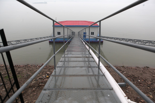 公安县麻豪口水厂合同总价1873万元,供水规模为22000m³/d,厂区占地面积11700m2,采用泵船从长江取水,建成后为公安县麻豪口、藕池、黄山三个乡镇15.36万人提供饮用水源,是公安县委、县政府为老百姓承诺的2014年度“十件实事”之一。该项目包括三座沉淀池、三座滤池、三座清水池、一座吸水井、一栋加压泵房、一栋办公楼、一栋加药间共计十三个混凝土结构物及一艘取水泵船和所有机电设备、金属结构的采购及安装。(工程二公司 雷杨)