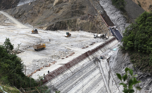到目前为止工程完成产约3500万元左右,占工程总投资的60%左右。已完成土石方开挖22.8万m3、砼浇筑1.42万m3、大坝填筑27万m3、钢筋制安560t。(工程二公司 王广)