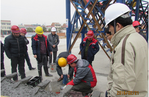 上午在砼拌合站,验收组成员亲自登上操作室查看了设备运行和砼试拌情况,现场检测了拌合物塌落度,并现场取样。下午在现场试验室查看设备状况、计量认证及设备检定等情况,同时在力学试验室进行了钢筋抗拉和冷弯等试验。验收组同时对砼拌合系统安全防护、标识设置及排水系统等进行了检查。