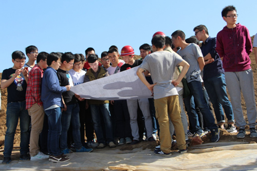 来访师生边参观施工现场,边听取工程建设情况、土方开挖及暗涵混凝土施工工艺流程和技术工法的介绍,并结合相关专业难点在工程施工现场与工程部负责人进行深入探讨。
