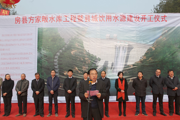 12月9日,房县方家畈水库暨县城饮用水源建设开工仪式在工程现场隆重举行,十堰市副市长刘学华出席仪式宣布开工,房县县委书记、县人大常委会主任蔡贤忠致辞,县直有关部门及军店镇相关领导出席开工仪式。公司董事长兼总经理余中平出席仪式并作为参建单位代表发言。