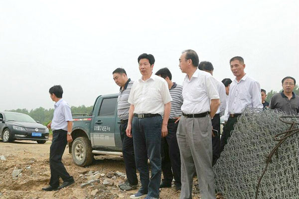 6月28日,黄冈市人大常委会党组书记、常务副主任孙璜清,黄冈市政协副主席詹汉斌率黄冈市防汛检查组一行赴公司承建的麻城市月亮岩橡胶坝和举水干流综合治理项目检查指导防汛工作。麻城市人大主任刘华强、麻城市副市长童国锋、相关部门负责人及项目部负责人陪同检查。
