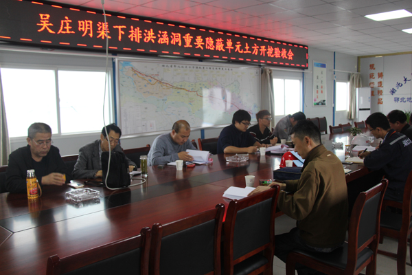 4月25日上午,鄂北地区水资源配置工程2016年第4标段吴庄明渠下排洪涵洞重要隐蔽单元(土方开挖)验收会在项目部会议室召开。由枣随部、质监站、设计、腾升监理组成的验收委员会经过现场查勘,一致认为吴庄明渠下排洪涵洞建基面开挖形象满足垫层混凝土浇筑条件,开挖质量满足规范和设计要求,验收资料齐备,具备验收条件、予以验收。