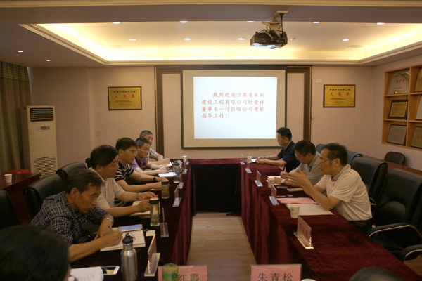 为了深入加强企业间相互交流学习,进一步开拓思维、扩宽思路,达到相互学习、取长补短、共同进步的目的。6月26日,江苏省水利建设工程有限公司董事长时爱祥一行莅临公司考察指导工作并在九楼会议室座谈,重点考察学习公司近些年改革经验并探讨企业未来发展等相关问题。公司领导余中平、胡刚、周运奎、闵国武、黄亚平等参加了会议。