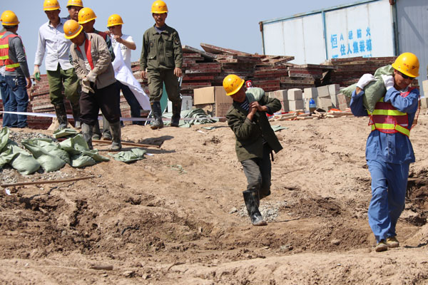 自长江1号洪峰进入我省期间,腰口泵站项目部领导班子坚守防汛抗灾一线,积极动员项目部全体员工投入防汛抗灾的工作当中,组建了由项目经理为队长的抢险突击队共计35名队员。在长江干堤上设立哨棚,无论晴雨,24小时进行轮班值守、巡堤,确保安全。