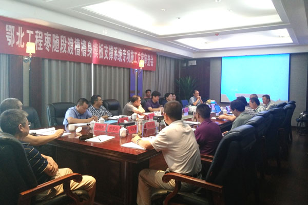 为保证沙河渡槽施工安全,确保槽身模板支撑系统设计合理有效,7月12日下午,鄂北4标沙河渡槽槽身模板支架系统专项方案评审会在枣阳召开,鄂北局党委委员、杜受富带领专家组对项目专项方案进行审查。鄂北局党委委员、总工程师陈长江,鄂北局党委委员、工程技术部主任季庆辉及公司董事、副总经理李长华出席会议。