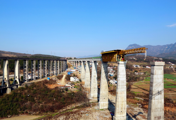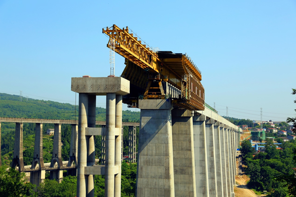 普溪河渡槽拆除重建工程是公司2015年承建的首个采用造槽机施工的大跨度小截面预应力箱梁渡槽。新建渡槽采用矩形上行式造槽机原位逐跨现浇,全长1003米,设计流量15立方米/秒,最大高度61.5m,河床段为20跨单跨40m预应力箱梁的简支结构,槽身为C50纤维素钢筋混凝土,集跨度大、高度高及最小截面尺寸小等特点于一身的工程实例目前在国内首屈一指,是水利行业极具挑战性的工程。