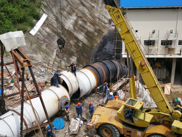 当地时间2017年10月21日上午10时许,随着下平洞洞口最后一节压力钢管的安装完成,公司承建的玻利维亚圣何塞一级电站近800m长的压力钢管成功合龙,项目压力钢管安装工作基本完成。至此,这条钢铁长龙既见首又见尾,已开始整装迎接项目的通水发电考验。(国际工程部   王欢)