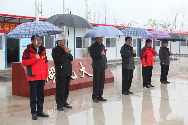 11月30日下午,项目管理总承包、设计、监理、施工、检测等参建单位及地方政府代表齐聚内荆河节制闸刚落成的新项目部,在雨中进行主体工程开工誓师大会,一致表态要共绘内荆河节制闸同心圆。