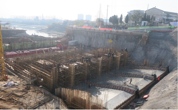 金口二站为Ⅱ等工程,泵站规模为大(2)型,主要建筑物为主泵房、拦污栅、引水渠、进水池、进水池挡墙、出口箱涵等,级别为2级。其中出口箱涵共七节。长104.14m,宽24.4m,贯穿s102省道,地面高程30.50m,挖深较大。穿堤箱涵的施工既要考虑到交通运行、又要考虑边坡稳定及减少占地等。因此,第一节穿堤箱涵底板顺利浇筑标志着金口二站工程进度又向前迈出一大步!为整个项目后续的穿堤箱涵验收及混凝土浇筑打下坚实基础。(第四工程公司 夏甜甜)