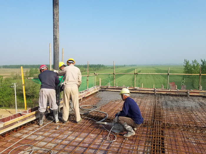 4月10日上午8时零8分,迎着朝阳与春风,沙洋县马良泵站工程第一标段迎来了主泵房屋顶混凝土的浇筑,标志着沙洋县马良泵站工程第一标段的主体结构物的完成。