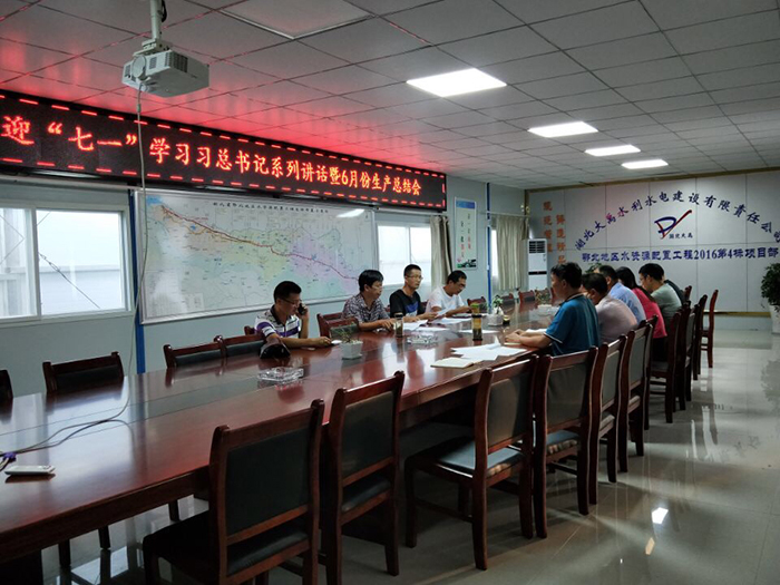 6月29日晚,鄂北工程2016年4标项目部召开“迎七一学习习总书记系列讲话暨6月份生产总结会”,项目部全体党员和主要管理人员参加了会议。此次会议揭开了项目部为期一个月的“七一主题党日活动”序幕。