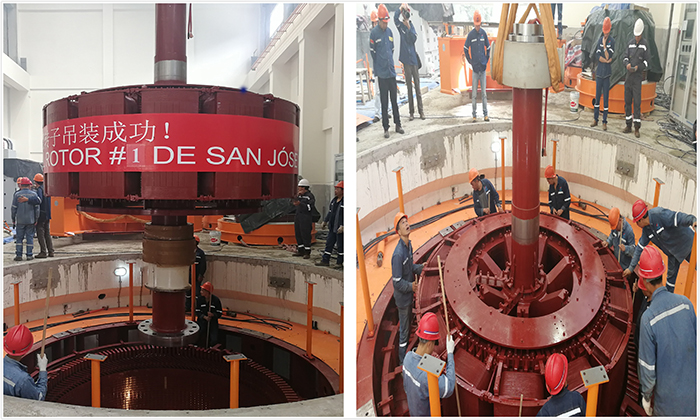 玻利维亚当地时间10月29日9时18分,随着圣何塞项目机电安装部门负责人一声令下,项目部机电安装人员按预定程序开始了圣何塞2级站第二台机组亦即整个圣何塞项目最后一台机组的转子安装工作,9时39分转子精确进入机组,吊装工作圆满完成。