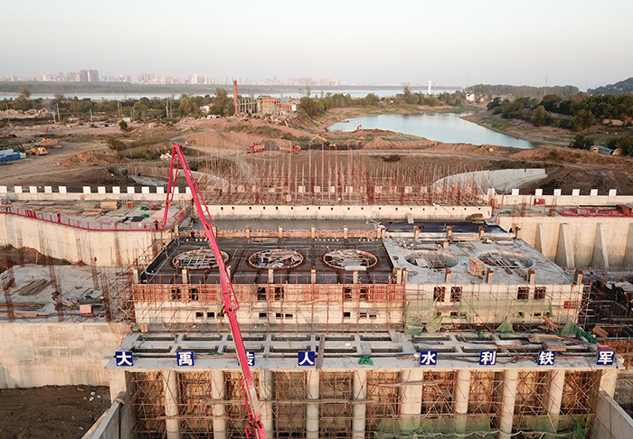 金秋十月,丰收在望,此时的樊口二站工地呈现热火朝天的建设氛围。10月28日下午,樊口二站主泵房三联电机层梁板完成混凝土浇筑。至此,樊口二站主厂房完成主体结构施工,为2019年4月底实现首台机组试运行目标创造了良好的条件。
