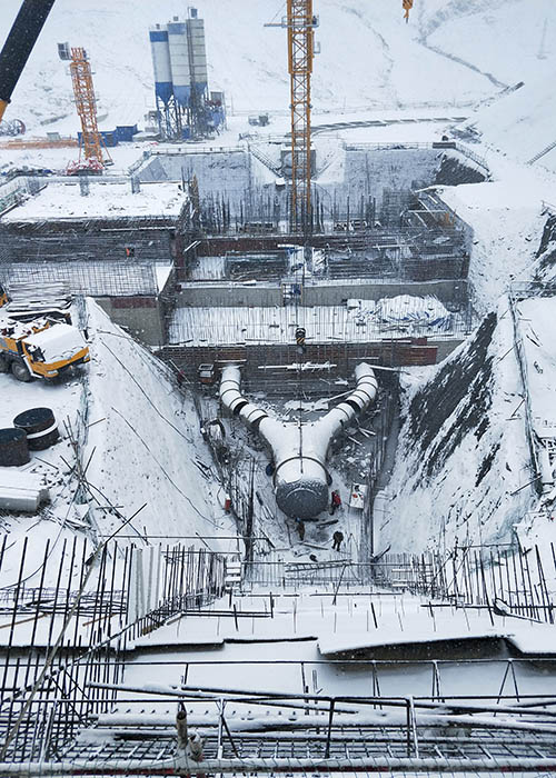 12月16日,由于地理条件限制,40吨的Y型岔管被130吨汽车吊缓缓吊起就位,宣布着整个压力钢管安装项目关键部位安装大战告捷!整个现场变成了欢乐的海洋,这一举措为整个拉洛项目工期提前了整整8个月。
