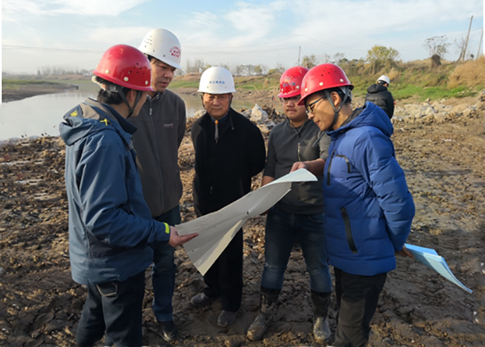 12月18日下午15时,由业主、监理、总承包、设计、勘测、施工单位组成联合验收小组对金口二站工程2017年度第一批项目第一标段出水渠护坦基面验收。