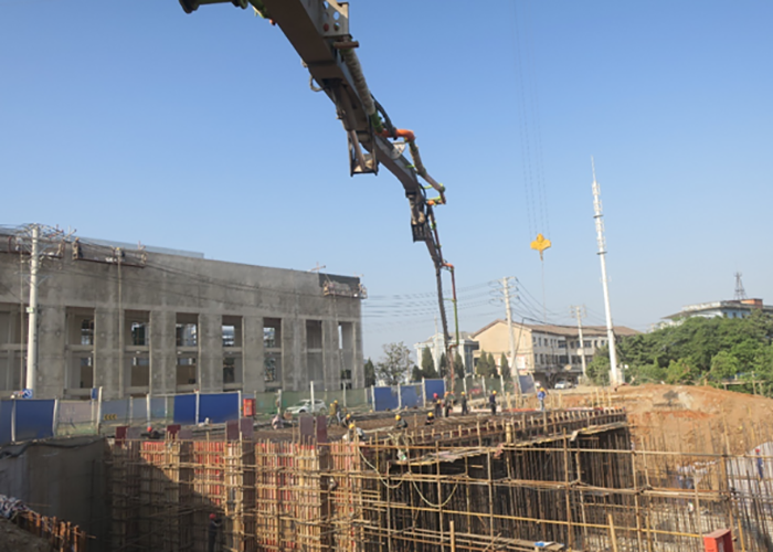 4月19日上午,随着项目部负责人一声开仓令下,技术员操控50m的天泵缓缓扬起长臂,作业面上的施工人员紧张有序地忙碌起来,金口二站第三节穿堤箱涵撑梁顶面及箱涵顶板开始浇筑作业,在项目部全体员工的密切配合之下顺利完成封顶作业。
