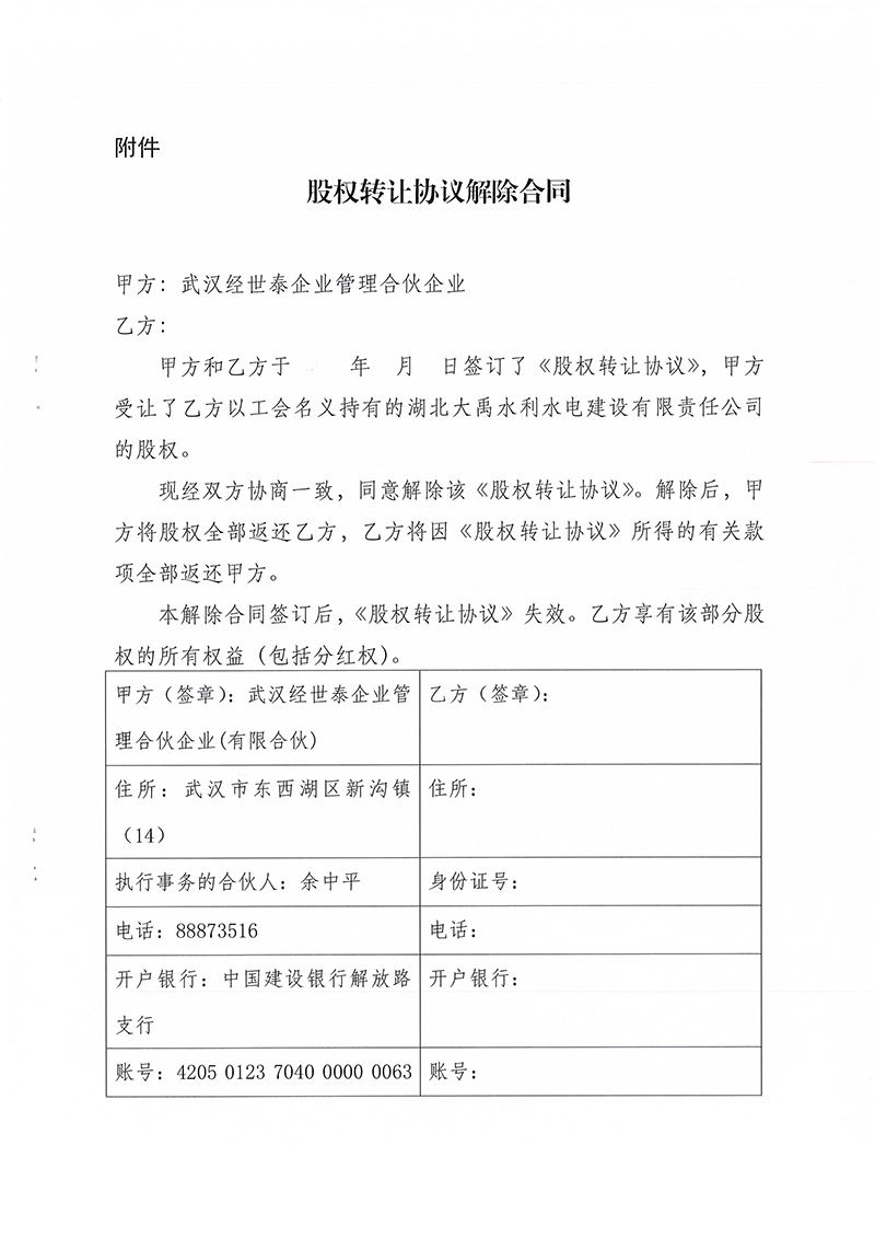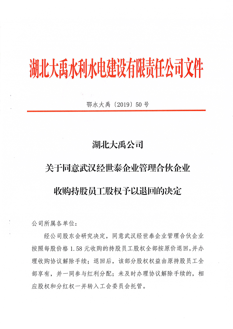 湖北伟德国际victor1946公司关于同意武汉经世泰企业管理合伙企业收购持股员工股权予以退回的决定