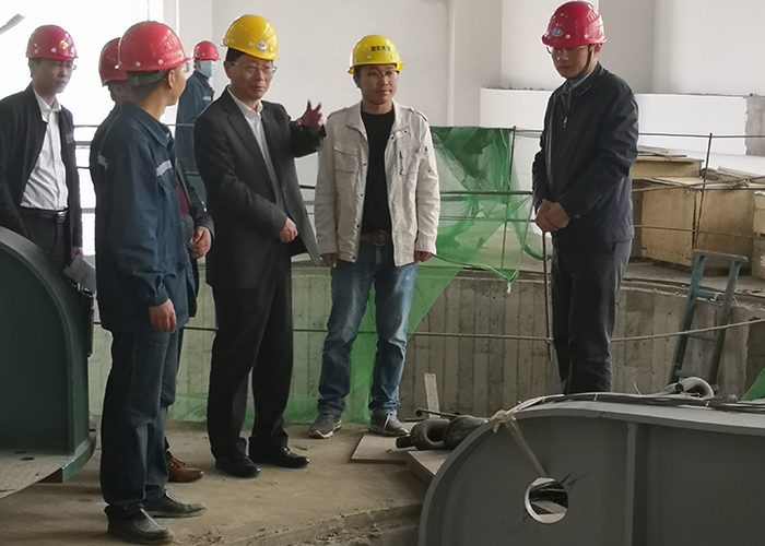 4月30日,嘉鱼县委书记胡春雷,县委副书记、县长王永率相关人员一行深入公司承建的余码头一、二站项目,调研检查汛前余码头泵站项目准备工作。