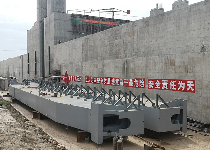 工程链接:该项目的主要特点是规格超大、生产难度大。目前生产的轨道梁(一)外形几何尺寸36410×1400×3500(2691)mm,单根轨道重量92074.3Kg;轨道梁(二)外形几何尺寸35960×1400×3500(2691)mm,单根轨道重量90952.4Kg,是省内特大型水工金属结构,是对公司生产设备、技术力量及员工技能都是一次全新考验。
