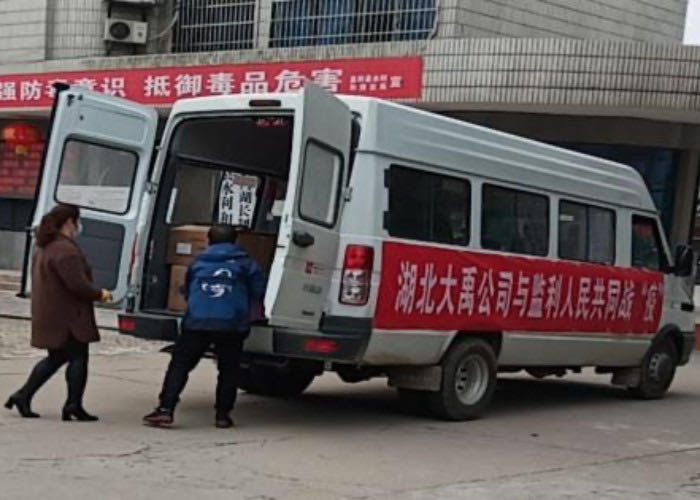 3月13日,在克服医疗物资紧俏、交通管制的重重困难后,专班人员终于将采购的5000只口罩、330瓶84消毒液顺利送到监利县水利和湖泊局。