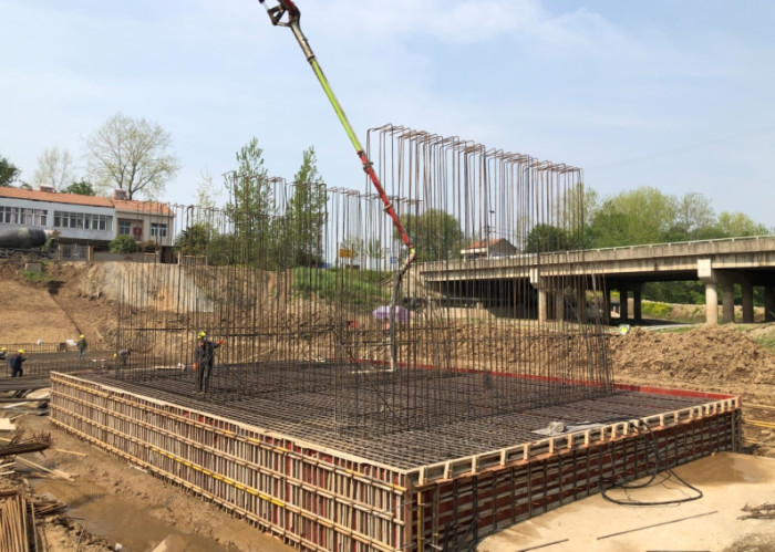 2020年4月8日10时,随着轰隆的礼炮声响起,在业主、监理、设计等单位的见证下,新洲市挖沟泵站新建工程EPC项目拦污栅底板混凝土开始浇筑。
