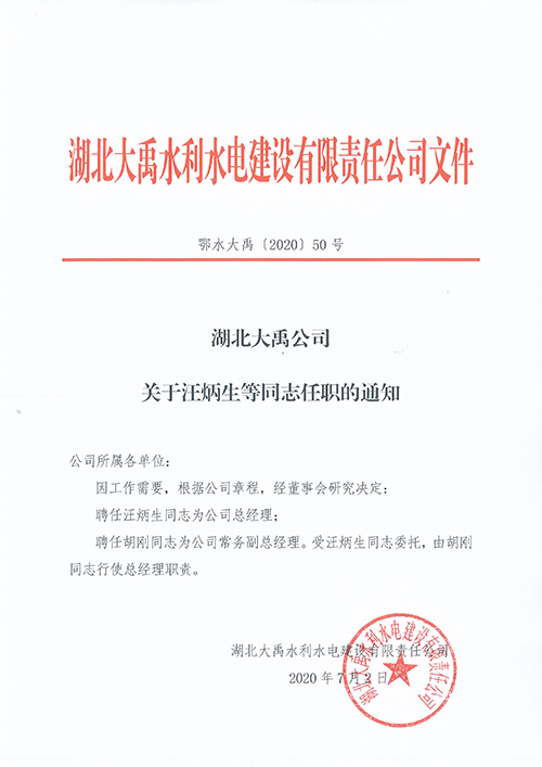 湖北伟德国际victor1946公司关于汪炳生等同志任职的通知