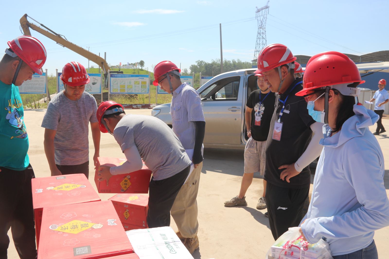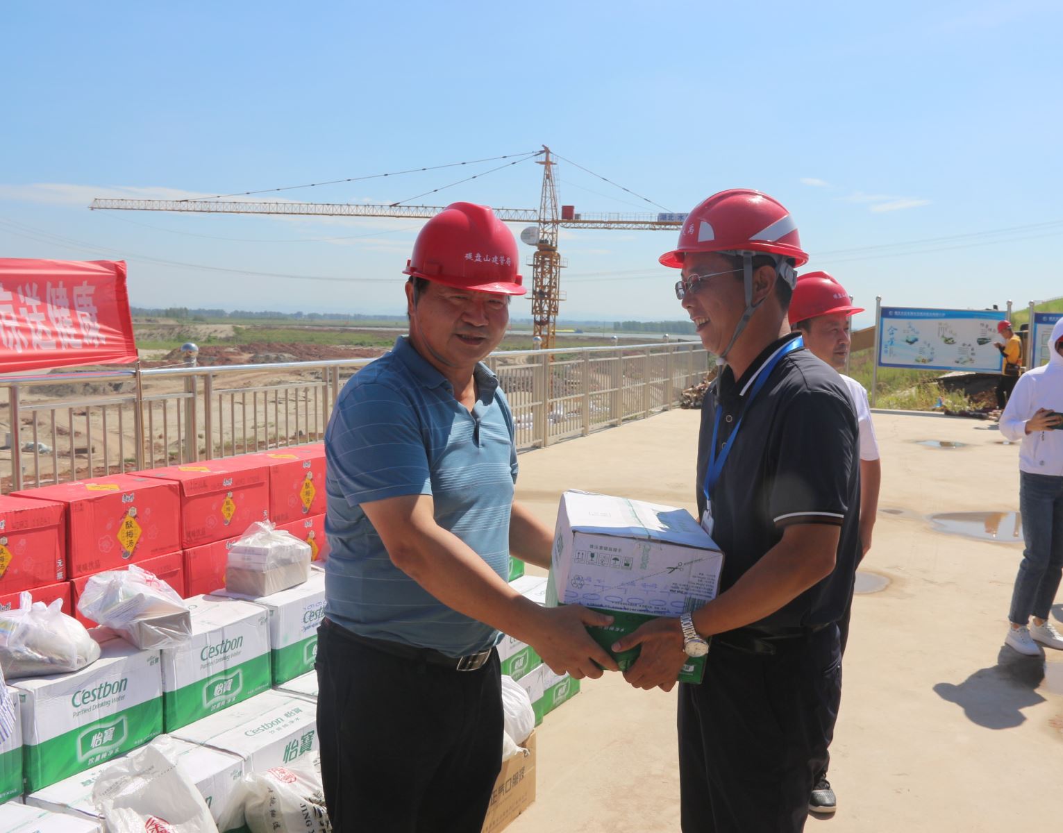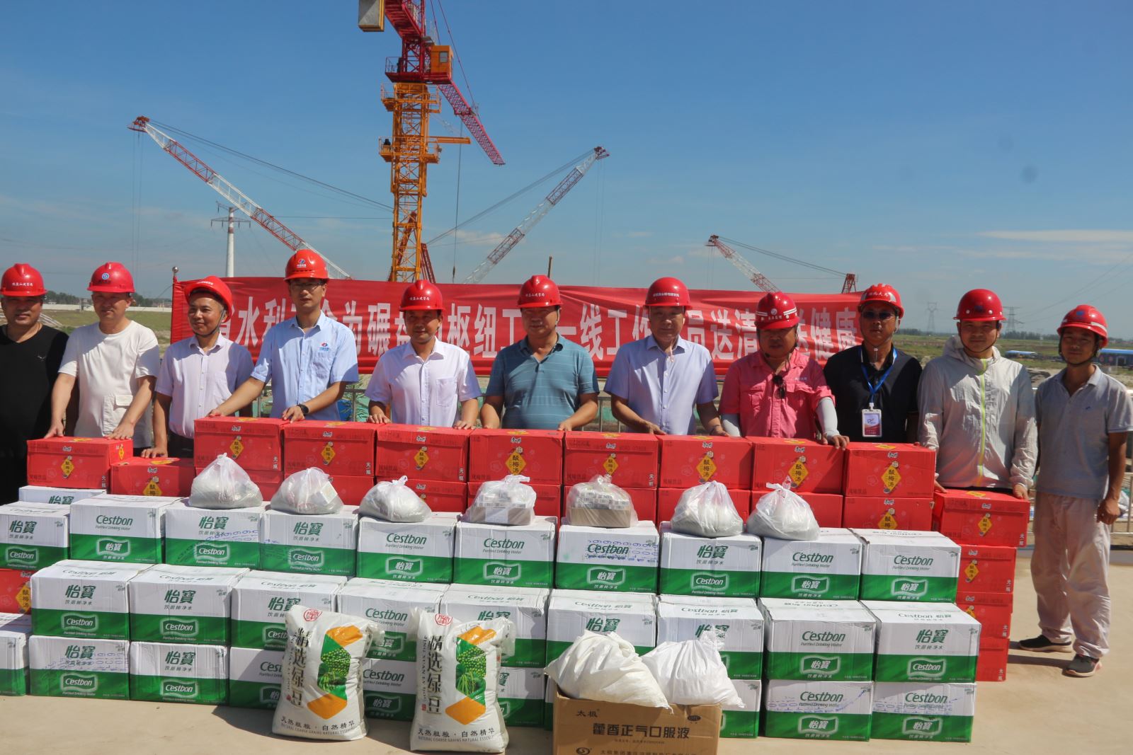 8月14日,省水利厅为碾盘山枢纽工程一线工作人员开展“送清凉,送健康”慰问活动。副厅长李静代表水利厅赠送了藿香正气水、矿泉水、酸梅汤等防暑物资,公司副总经理兼项目负责人周运奎接受赠送。