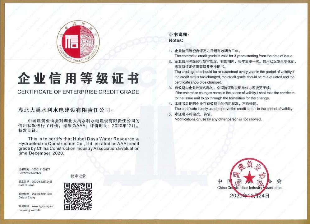 2020年12月24日,中国建筑业协会发布建协【2020】50号文“关于公布2020年度建筑业AAA级信用企业的通知”,公司荣获2020年度建筑业AAA级信用企业。公司长期注重社会信用建设,倡导企业诚信守约,努力营造诚信为本、操守为重的良好氛围,维护了守信用、重合同的良好企业形象,实现了经济效益和社会信誉的双赢。