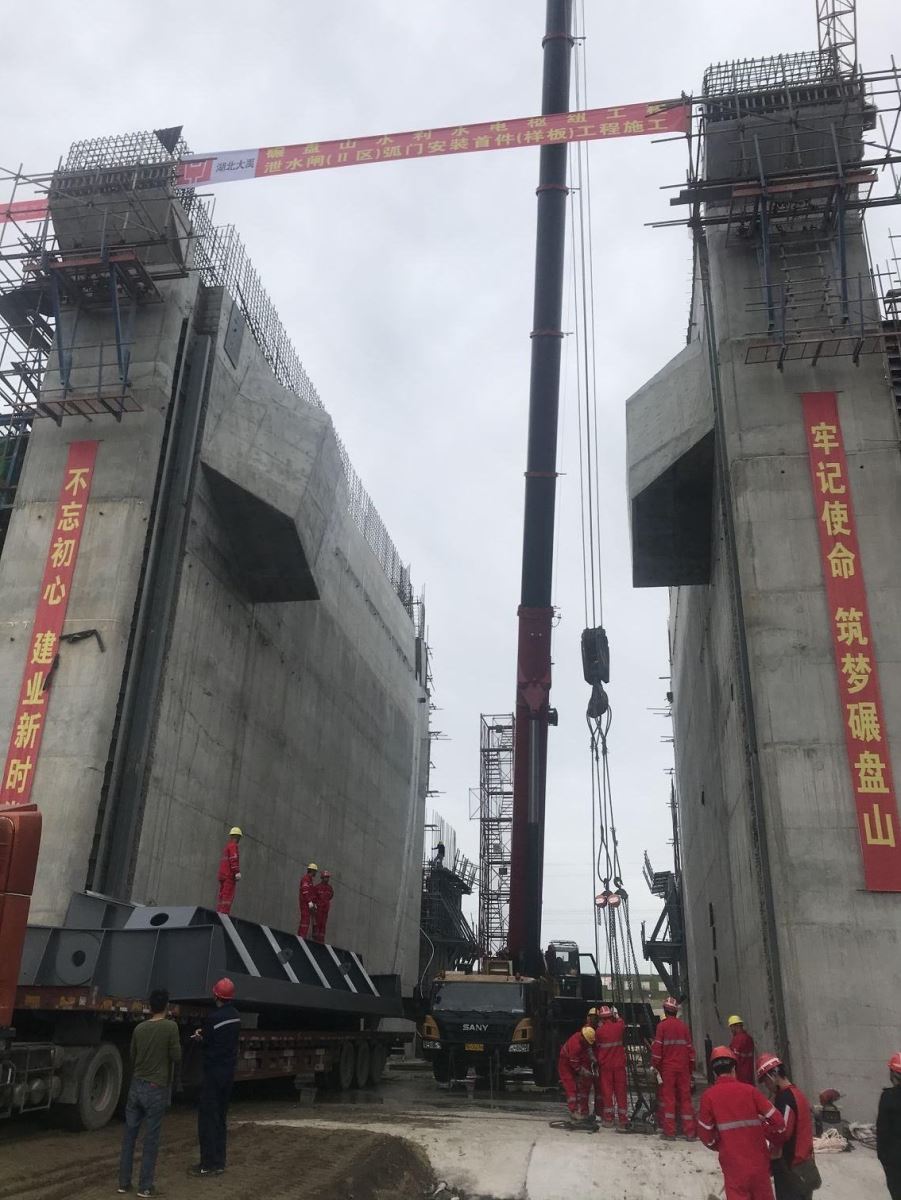 首扇弧形闸门的顺利吊装,为后续的闸门安装打下了良好基础,也标志着碾盘山枢纽泄水闸工程建设向着“10月底具备过水条件”的目标又迈出了坚实的一步。
