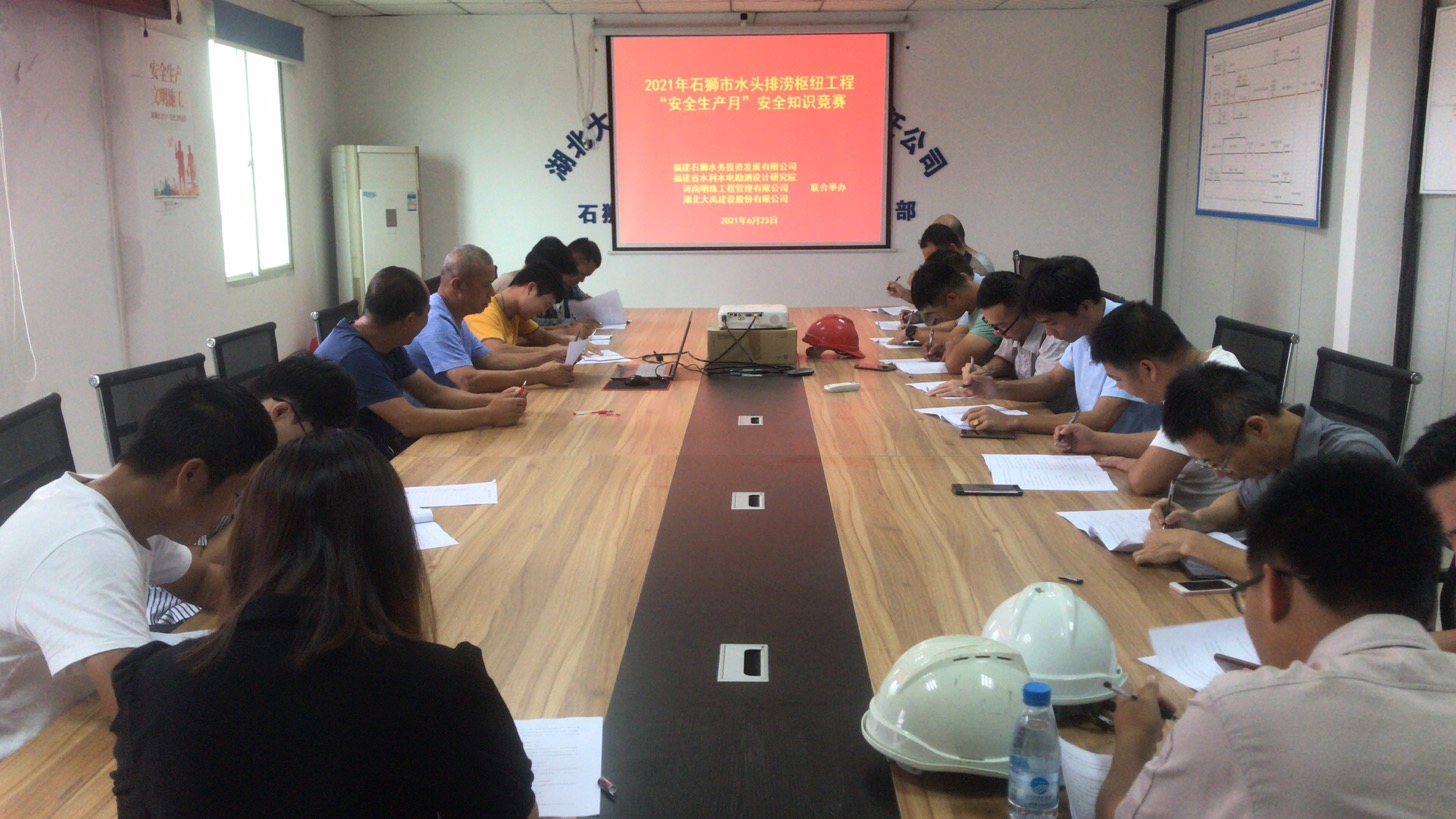2021年6月是第20个全国“安全生产月”,6月也是全年安全工作承前启后的关键之月,面临高温、雨季的事故多发危害,安全工作任重道远。自安全生产月活动全面启动以来,石狮市水头排涝枢纽工程项目部积极落实“安全生产月”活动方案的布署,于623日开展“落实安全责任·推动安全发展”安全生产知识竞赛活动。