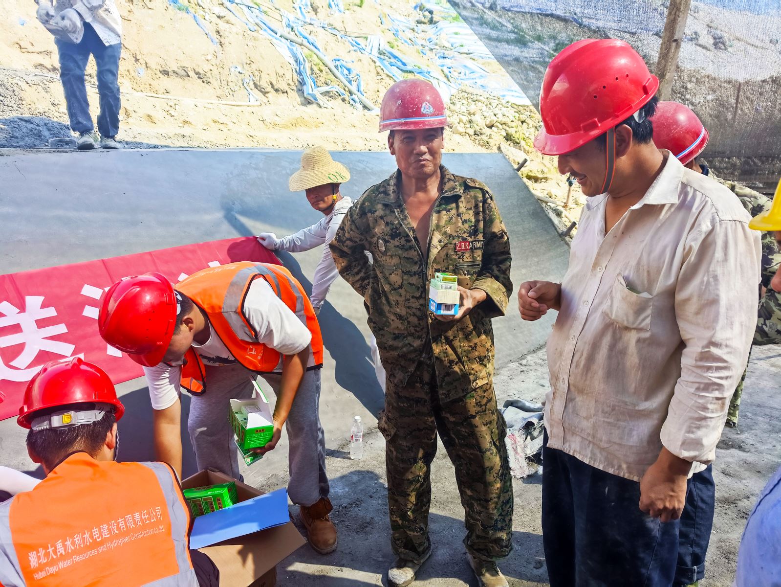 夏日炎炎,骄阳似火、高温天气的到来,给大家带来了诸多不便。尤其是奋斗在施工现场的一线员工,更是酷暑难挡。为确保项目部一线员工的身心健康,合理组织施工建设,加快施工进度,保证施工安全,公司领导结合工作实际,开展“防暑降温送清凉”主题活动,传递公司对员工的关爱。通城县云溪水库项目后勤部购置了人丹、藿香正气水、风油精等防暑降温物资,发放到公司一线的现场施工人员手中。