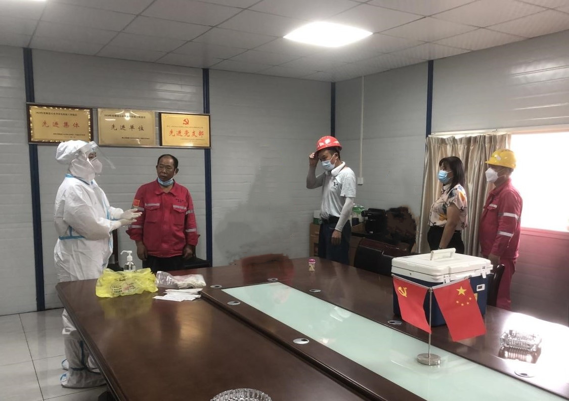 为全面应对好近期严峻的疫情形势,碾盘山项目部于8月11日下午邀请钟祥市中医院相关医务人员到我项目部为所有员工进行了新冠肺炎病毒核酸检测。为避免人员聚集,保证采集质量,项目部利用会议室作为临时检测点。