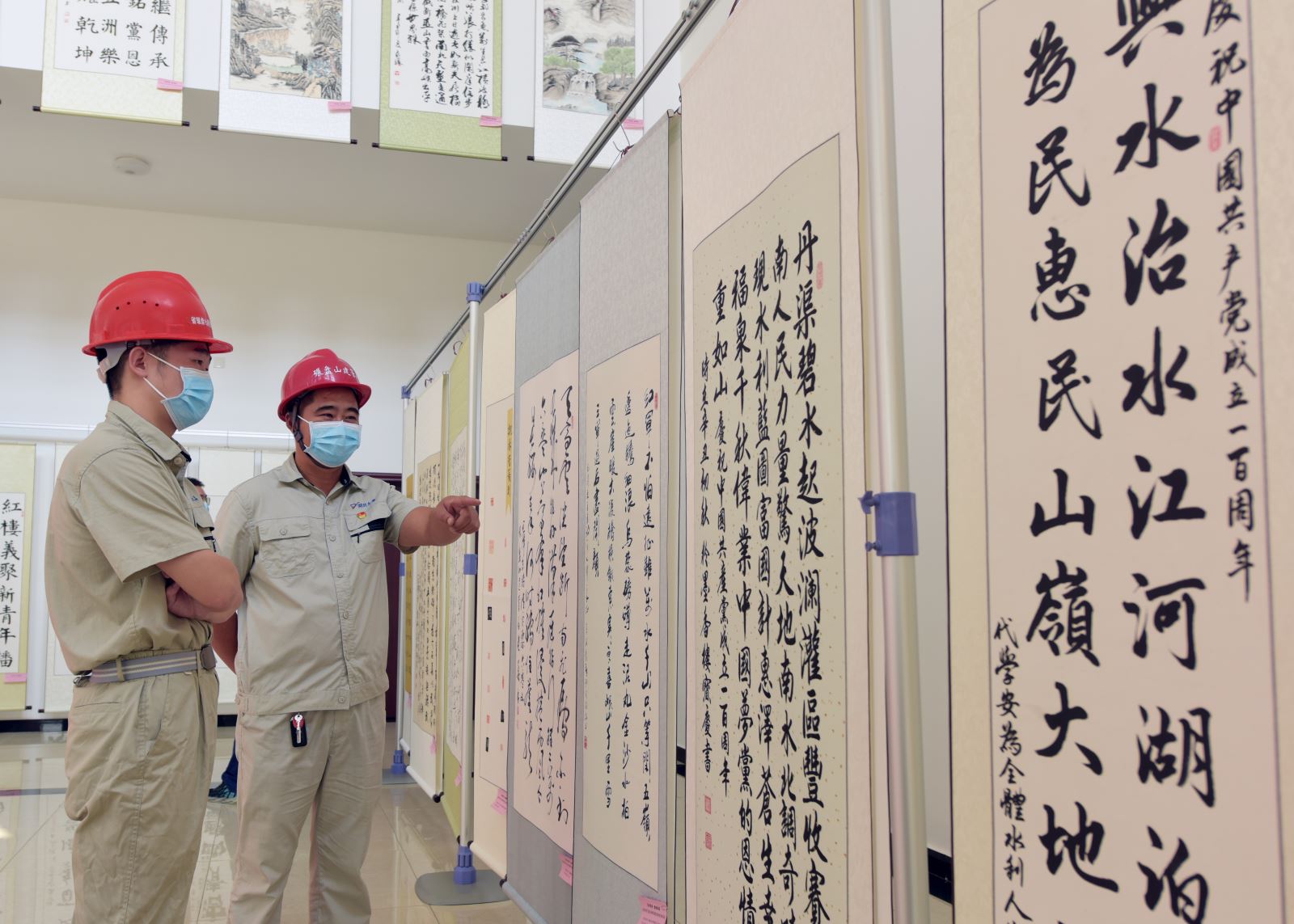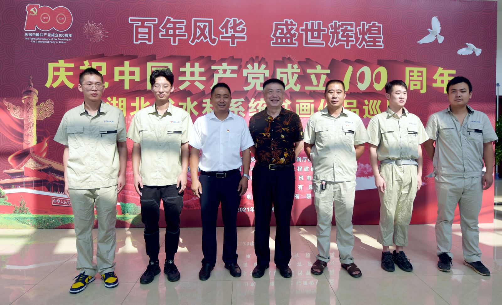9月28日,为庆祝建党百年华诞,深入推进第二十二个党风廉政宣传教育月活动,不断加强党风廉政建设,营造反腐倡廉、崇尚廉洁的良好氛围。湖北省水利厅机关党委、厅精神文明办在省碾盘山枢纽工程现场举办了庆祝中国共产党成立100周年湖北省水利系统书画作品巡展暨“党建进工地”廉政书画展活动。项目部主要负责人、党员和员工代表参加了本次活动。