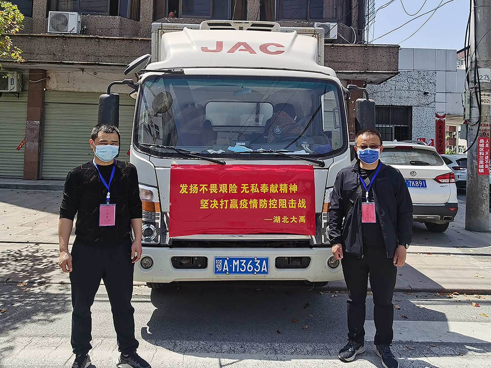 ​3月29日,大悟发现1例外省返悟人员核酸检测呈阳性。为保障全县人民群众身体健康和生命安全,经大悟县疫情防控指挥部研究,对大悟县城区和三里镇人员进行分区分级管控。大悟疫情引起公司的高度关注,期间公司积极与大悟县水利和湖泊局联系,了解到目前大悟市民对农产品需求较大。疫情管控下,市场上的生鲜蔬菜出现不同程度的价格波动,听此消息后公司立即向武汉蔬菜供应商紧急调集了151箱新鲜的蔬菜,经过严格消杀、打包装箱后,4月8日,满满一货车的物资从武汉出发抵达大悟,助力大悟抗击疫情。