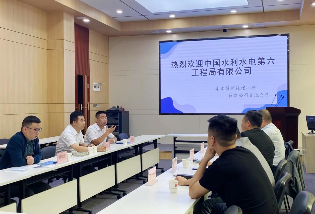 近日,中国水利水电第六工程局有限公司西南公司党委书记兼总经理李文昌、副总经理赵海涛、经营部负责人一行三人到公司进行交流合作,并与公司副总经理余建华、副总经理张常飞在二楼会议室开展座谈。市场拓展部负责人、江能公司负责人等参加了会议。