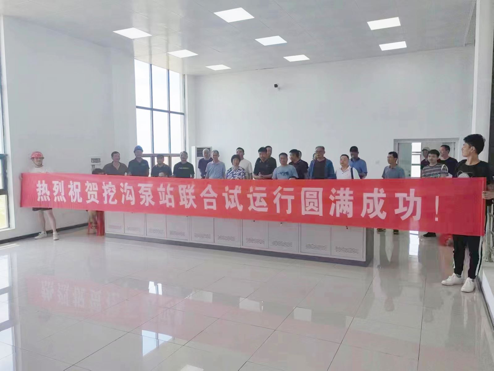 为了确保机组联合试运行按计划顺利进行,试运行启动前,项目部安排主水泵、主电机、电气一次、二次、辅机和励磁等厂家技术人员各就各位,检查各自设备的运行状况;试运行期间,各厂家根据总调度的的安排,解决各自设备出现的问题。6月25日上午8:00,各参建单位负责人早早进入了试运行的准备工作中;9:00,挖沟泵站项目负责人下达“开机”指令,工作人员按下启动按钮,三台机组依次开始试运行。机组一启动,进水池水流湍急,奔腾而出;出水池波涛汹涌,宛如巨龙入江。