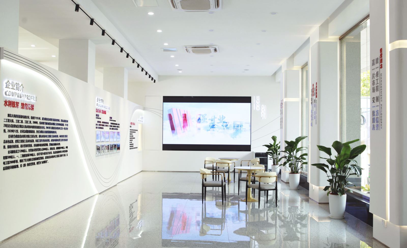 公司文化展厅设于公司总部一楼,全厅以“水”文化作为主线贯穿始终,集宣传、展示、参观于一体,多形式、多视角、多方位地展现了公司历史进程和高质量发展成果。精炼的文字叙述着公司自1955年成立以来六十余年的光辉历史,珍贵的照片串联起历史轨迹,从应运而生到曲折前行、从传统建设到革固鼎新,每一展位都引人入胜、每一次蜕变都催人奋进。