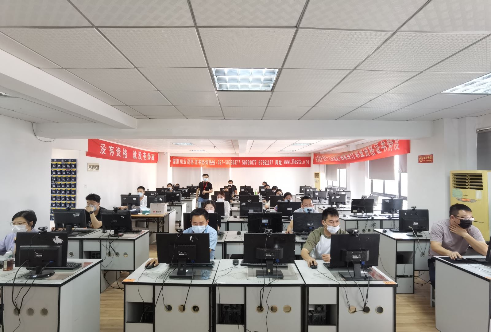 由于疫情影响,本次特种作业培训采用线下信息采集和线上授课相结合的模式。参与对象为一线的项目员工,分为建筑电工、建筑架子工、起重机械司机、起重信号司索工四个特殊工种,主要教学内容包含安全管理制度、安全生产基本常识、施工安全技术操作规程以及潜在的危险因素和防护措施。结业考试分为上半场考理论知识和下半场实践操作。本次参考人数为40人,40人考试全部合格,可取得建筑施工特种作业人员操作资格证书。