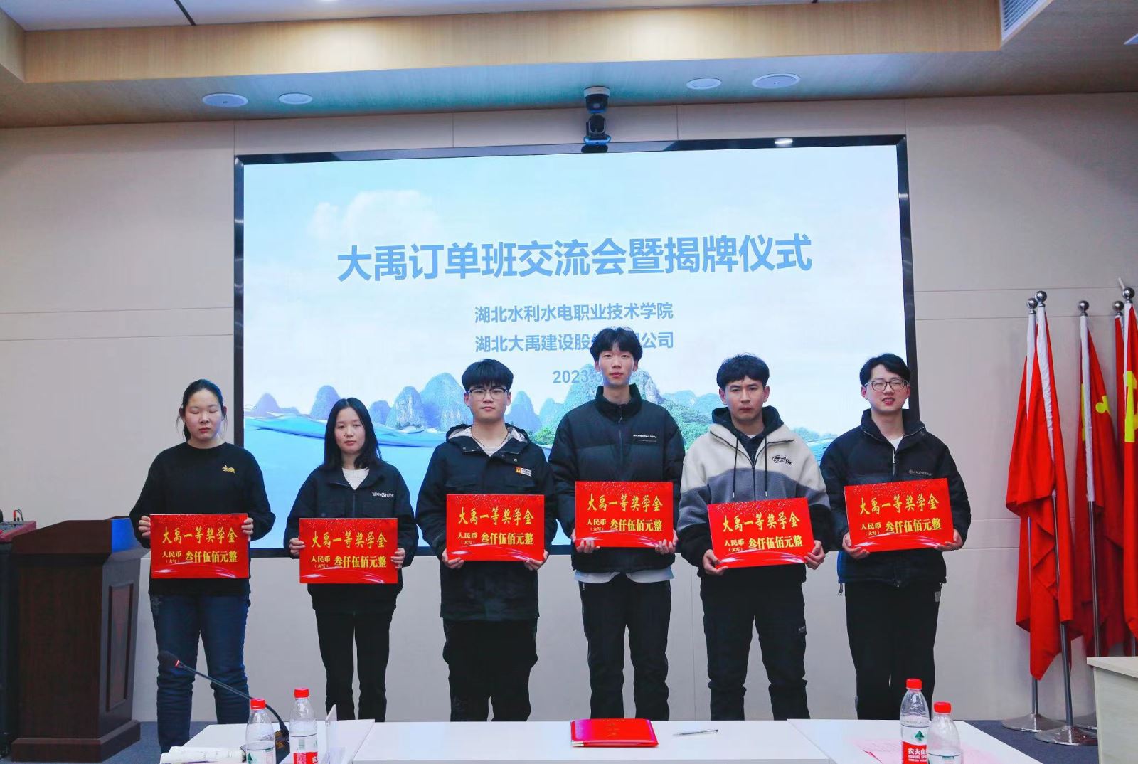 随后,公司、水职院及学生们签署校企合作三方协议并共同揭牌,公司为优秀学生发放了奖学金。简短而温馨的仪式结束后,全体与会人员合影留念。相信订单班学生能够满怀热情,在实践中学习和巩固理论知识,积累经验,丰富阅历,使自己迅速成长,不负青春,不负韶华!