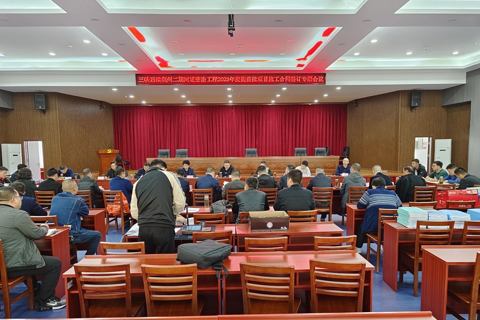 3月9日,荆州市长江河道管理局主持召开三峡后续荆州段二期河道整治工程2023年度提前批项目施工合同签订专题会议,市河道局副局长陈飞、各建设管理办公室技术负责人及监理单位总监等出席签约会议。