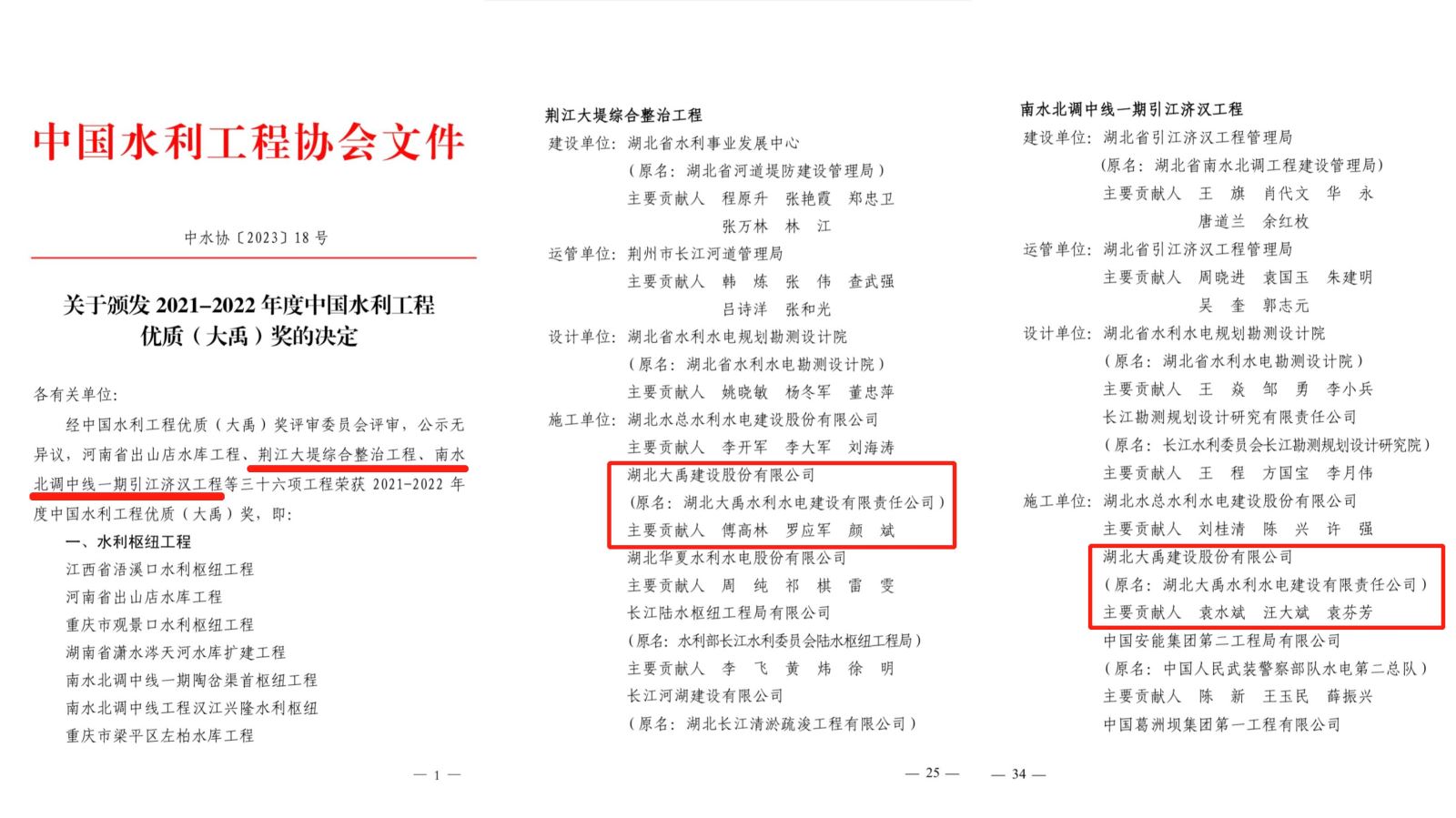 5月5日,中国水利工程协会发布《关于颁发2021-2022年度中国水利工程优质(伟德国际victor1946)奖的决定》(中水协〔2023〕18号),公司参建的南水北调中线一期引江济汉工程、荆江大堤综合整治工程两项工程荣获中国水利工程优质(伟德国际victor1946)奖。