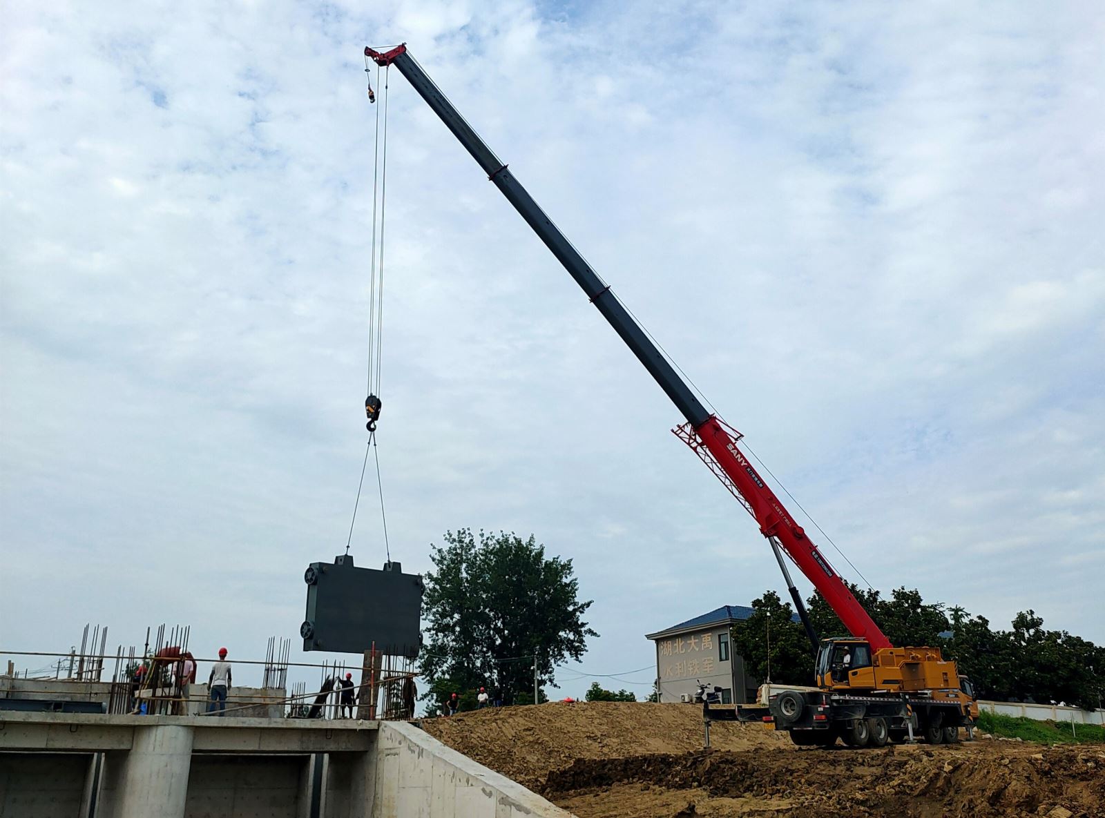 6月7日,随着第四块防洪快速门准确吊装到位,张家湖泵站金属结构所包括的7孔拦污栅、4孔安全栅、4孔检修门、4孔防洪工作门、4孔防洪快速门、3孔自排闸闸门轨道埋件安装完成,检修门前的防洪墙衬砌粉刷完成,标志着张家湖泵站扩建工程水下工程已经全部完成,进入安全防洪排涝状态。