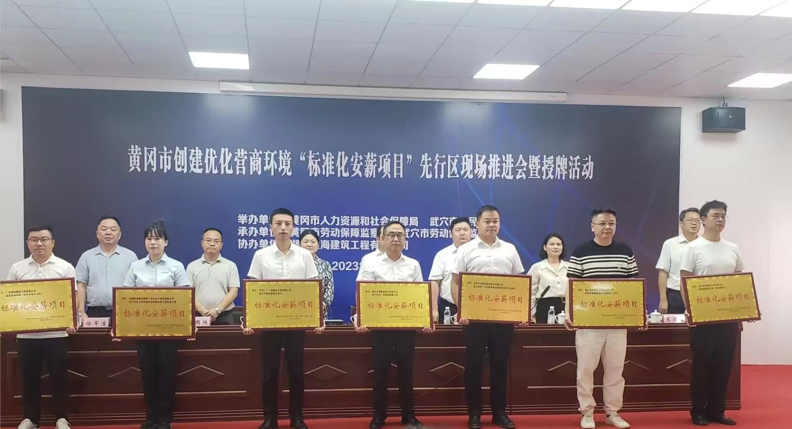 8月17日,在武穴市经开区举行黄冈市创建优化营商环境“标准化安薪项目”先行区现场推进会暨授牌活动,公司武穴水厂项目被授予“标准化安薪项目”。会议由黄冈市人力资源和社会保障局与武穴市人民政府联合举办,目的是为表彰符合《湖北省工程建设领域劳动用工规范化管理指导手册(第一版)》的优秀在建工程项目,同时为迎接下一阶段国务院根治欠薪工作检查做出部署。