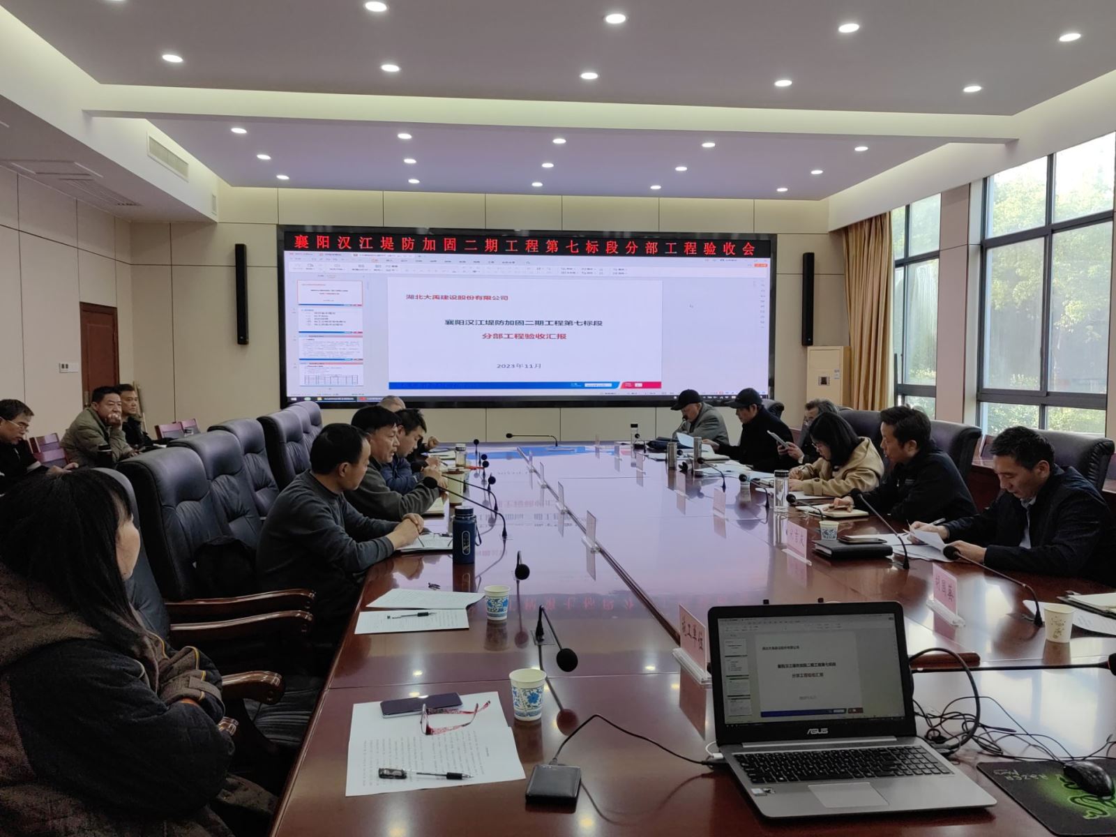 “红枫满地金秋色,硕果飘香满枝头”,11月16日,在襄阳市水利和湖泊局会议室召开了襄阳汉江堤防加固二期工程第七标段分部工程验收会议。襄阳市水利和湖泊局副局长胡兴华,襄阳市河道堤防管理局局长宋吉友、宜城建管办、设计、监理等单位,特邀专家组及公司相关代表参加了本次会议。襄阳市水利和湖泊局、襄阳市水利工程质量监督站派员列席了本分部工程验收会议,并对验收工作开展情况进行了监督。