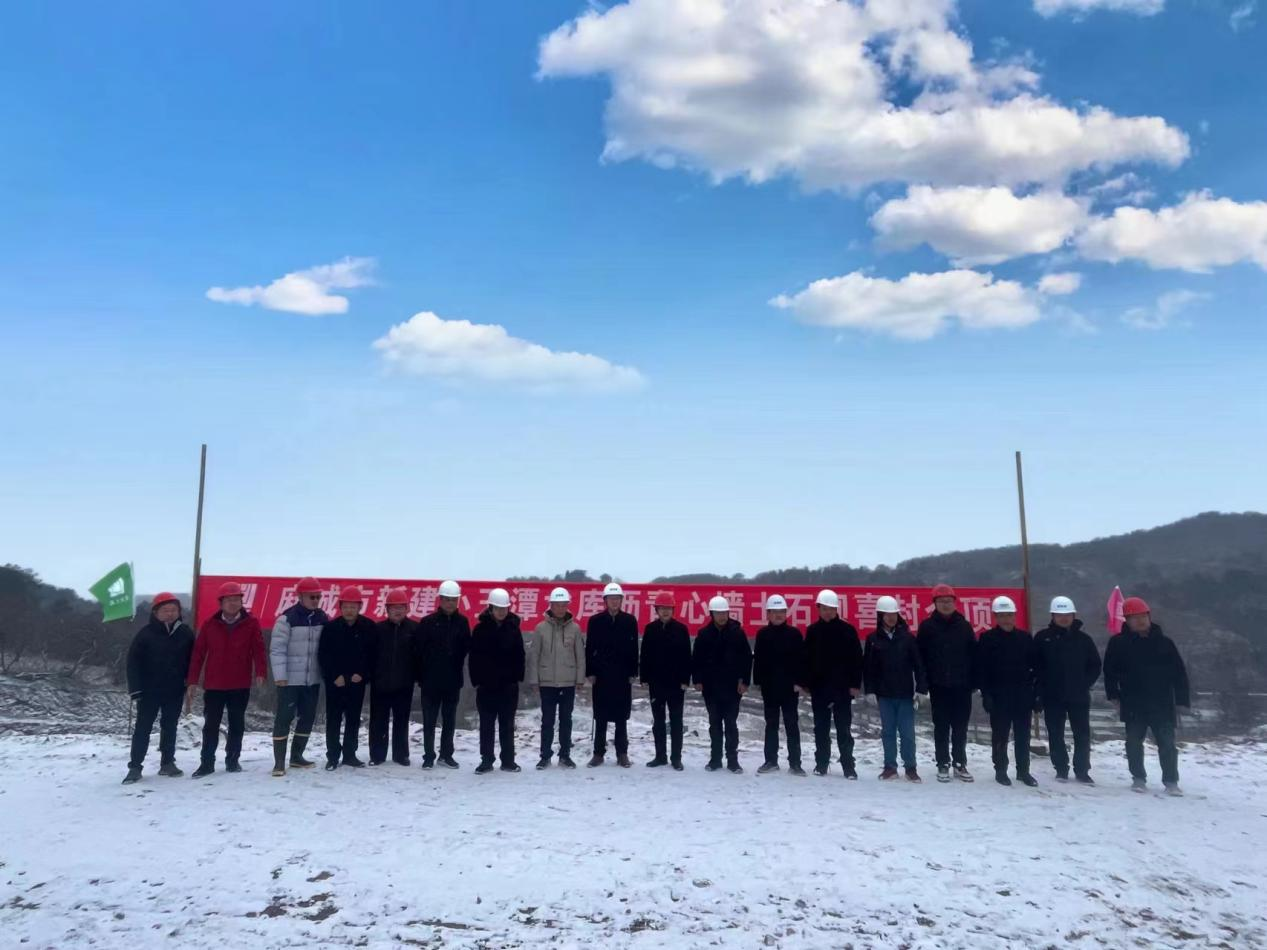 2023年12月18日,麻城市第一座沥青混凝土心墙土坝—小玉潭水库喜封金顶。当日上午,麻城市市水利和湖泊局副局长何进文率相关负责人来工地现场慰问并表示祝贺,公司副总经理胡元红,第二工程公司负责人及责任项目经理全程陪同并汇报相关工作,何进文对项目的施工进度、施工技术力量、安全生产及文明施工给予了肯定。