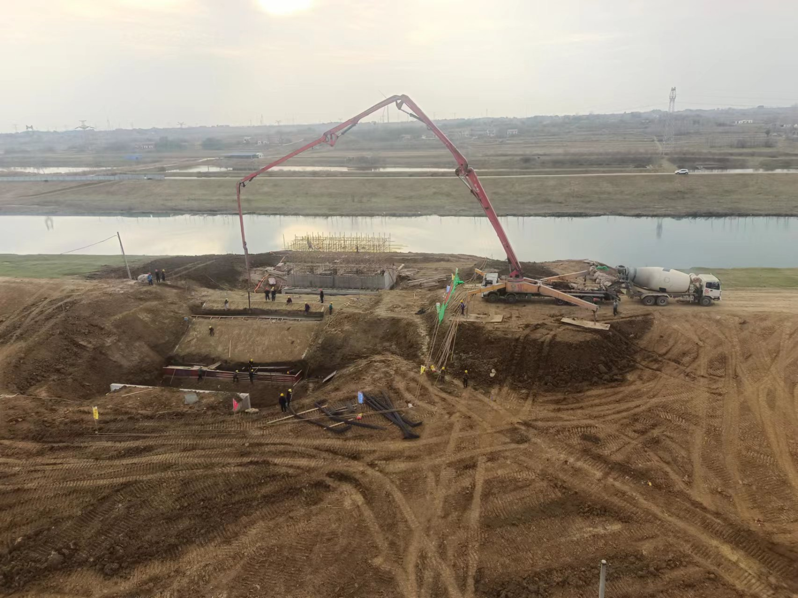 新春伊始,在各级领导支持下,喻家泵站工程于2月26日对大富水干堤进行了破堤开挖,“开弓没有回头箭”,寓意着本年度项目防洪度汛任务十分艰巨。根据既定节点要求与项目部全体管理人员的努力下,项目于3月8日完成出水流道驼峰段基础验收,并顺利对基面进行了砼垫层覆盖,为泵站出水流道全线贯通夯实了基础,标志着项目施工进入攻坚战。
