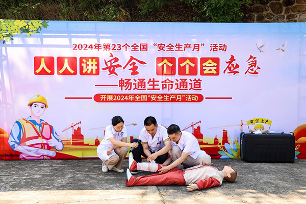 活动中模拟了在工程建设过程中可能出现的突发状况,如火灾、机械伤害事故、触电事故、高处坠落事故等场景,由医护人员演示并讲解具体应急处置等知识,其中特别提到要以“先救命,后治伤的”原则为医护人员争取时间,进一步强化了工程人员的安全意识和应急处置能力。